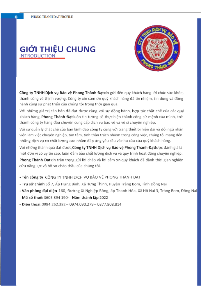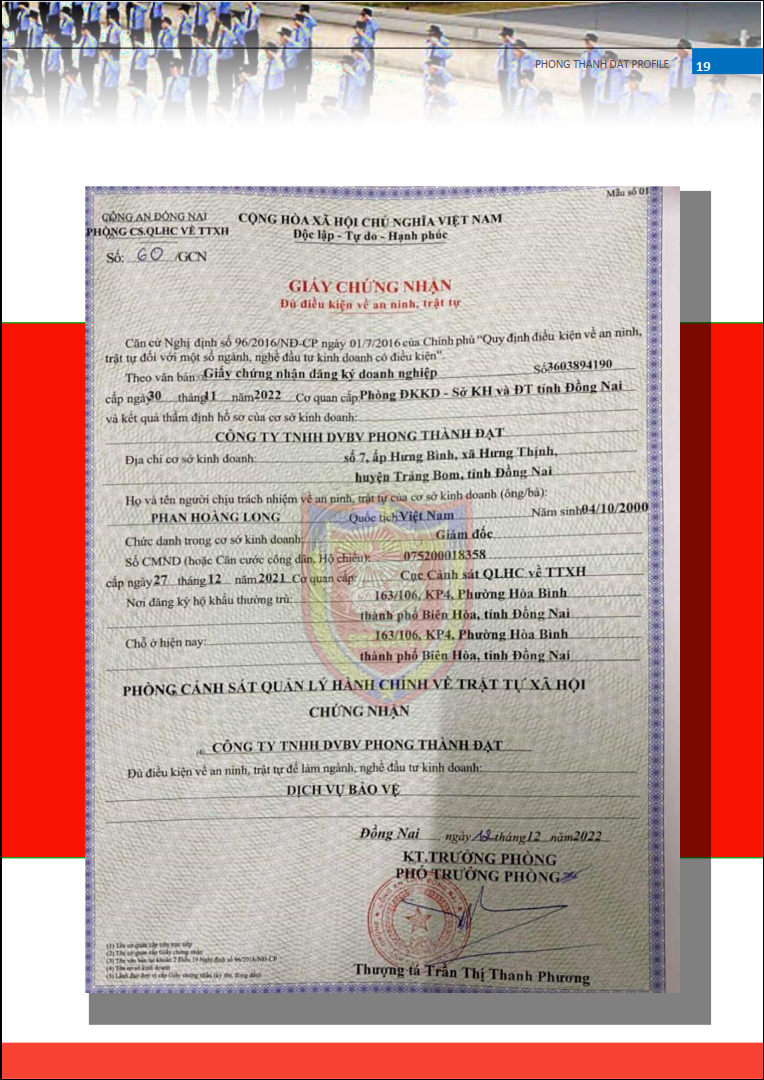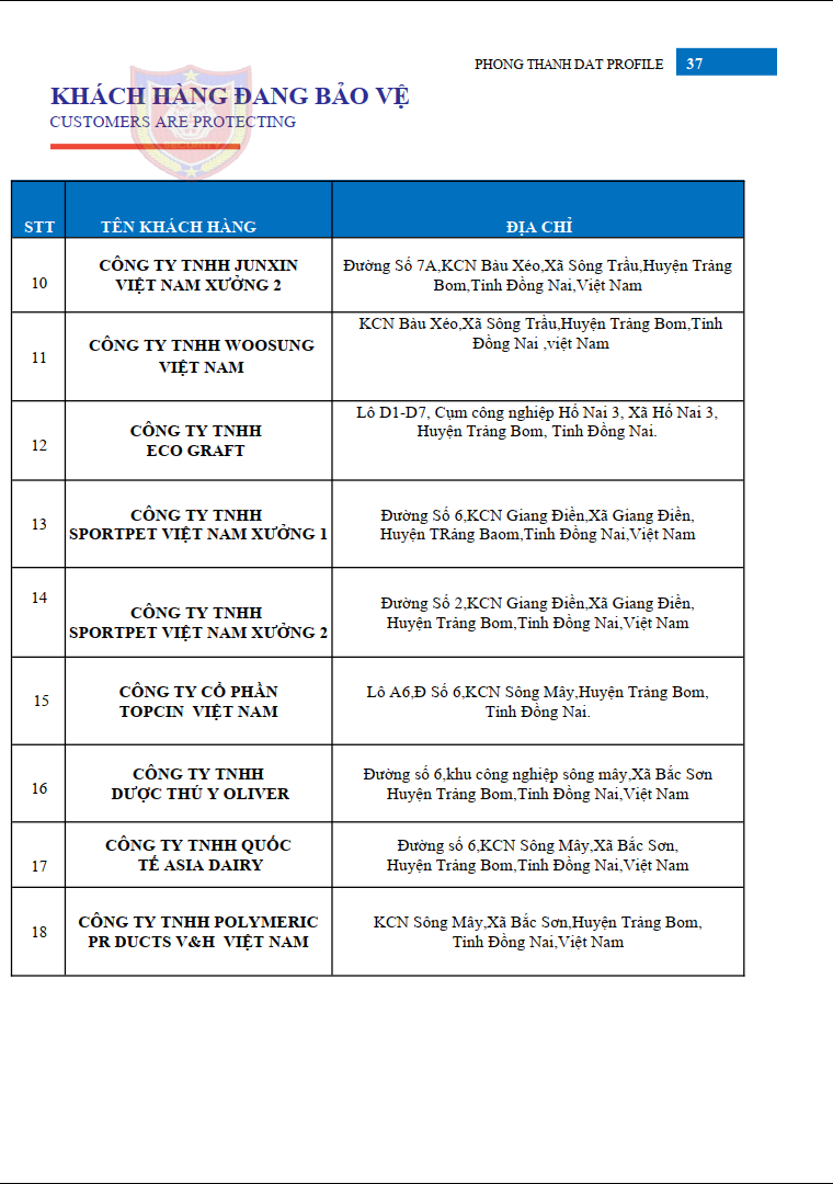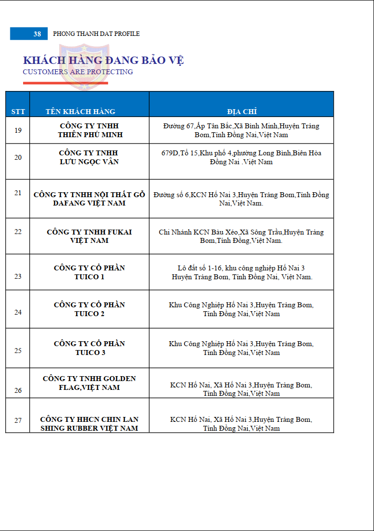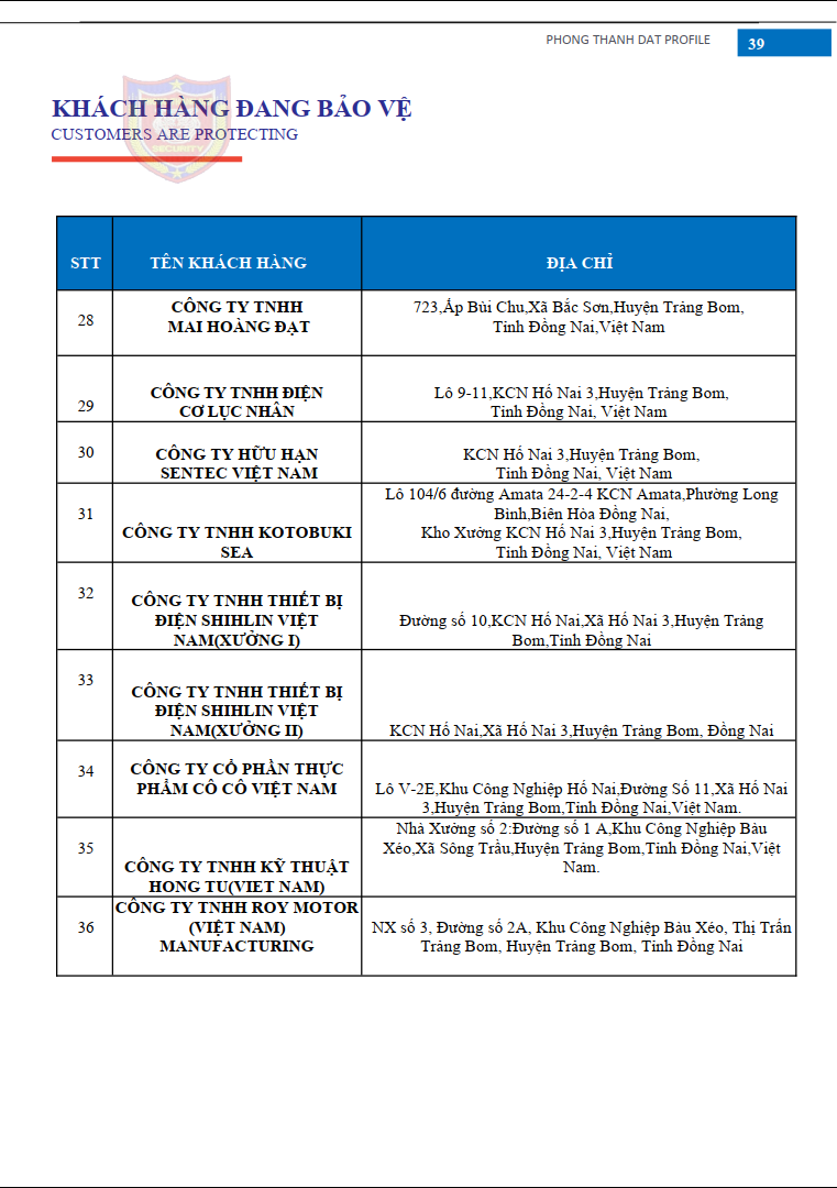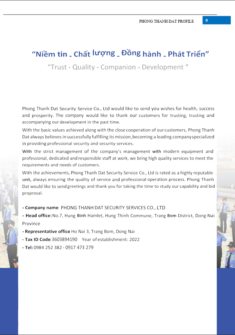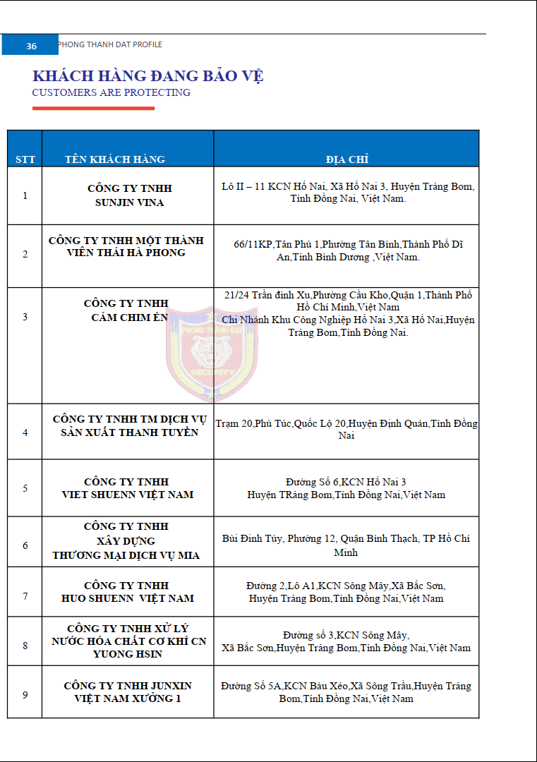 CÔNG TY TNHH DỊCH VỤ BẢO VỆ PHONG THÀNH ĐẠT