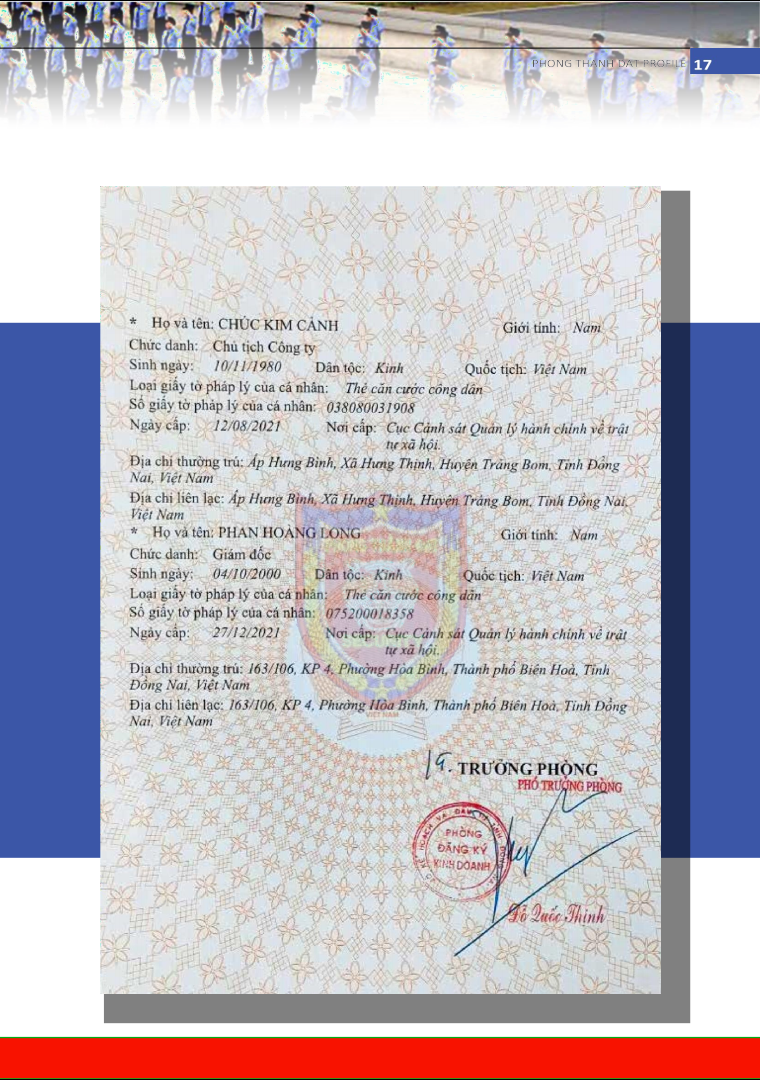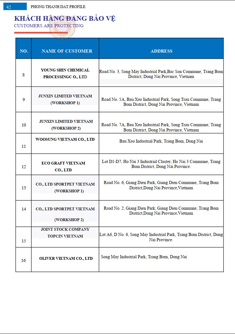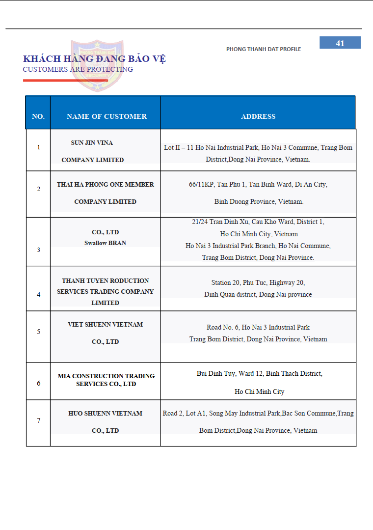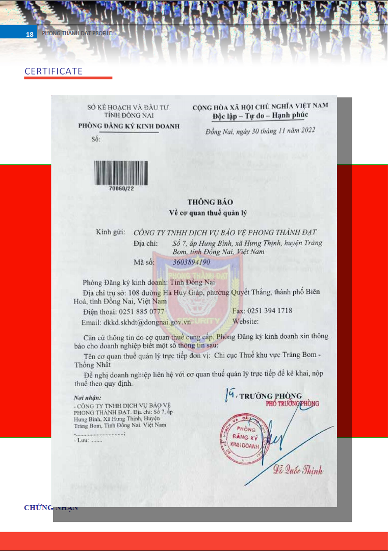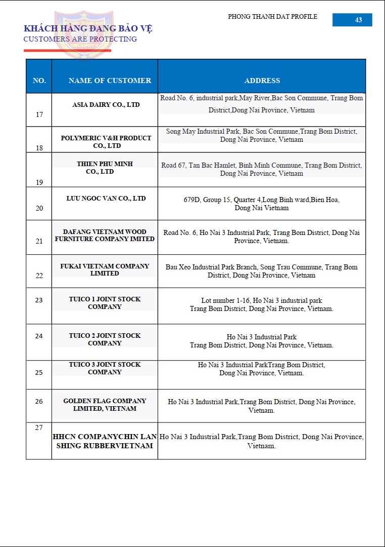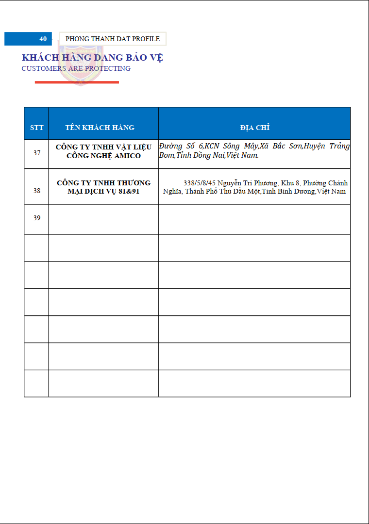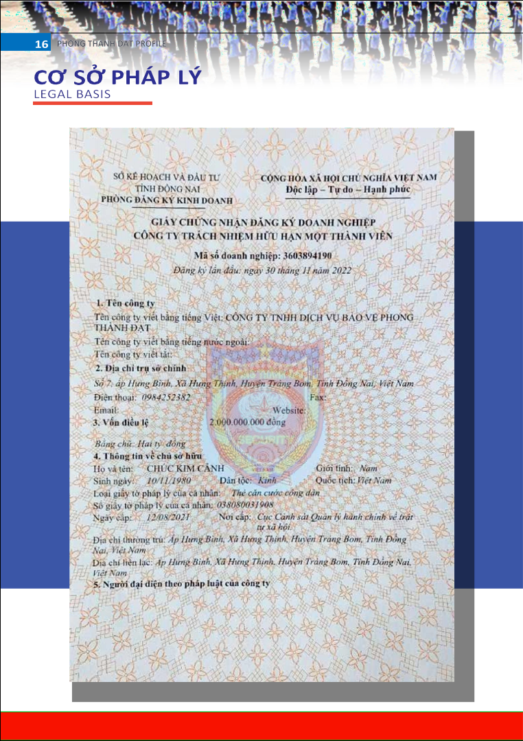 CÔNG TY TNHH DỊCH VỤ BẢO VỆ PHONG THÀNH ĐẠT